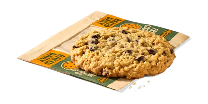 A freshly baked cookie packed with hearty oats and rich chocolate chips for a warm, comforting treat.